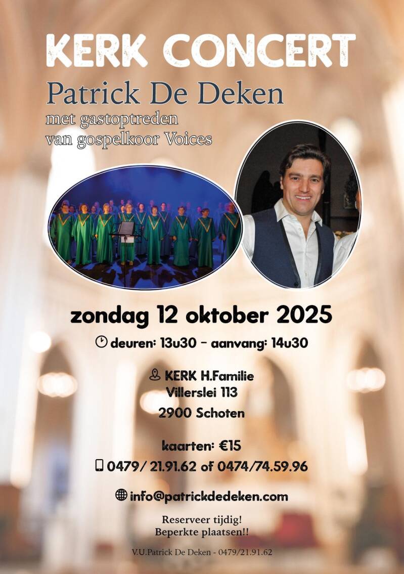 Op zondagnamiddag 12 oktober gaf Voices gospelkoor een gastoptreden bij het Kerk concert van Patrick De Deken in Schoten.